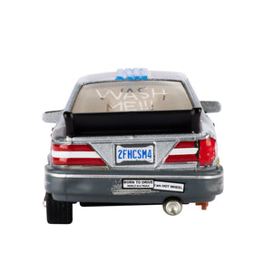 - Cracked front windshield and dirty rear window with, “WASH ME” written on it
