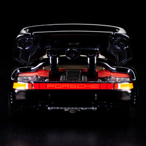 For Porsche’s 75th anniversary, we’re retooling the legendary 1986 Porsche 959. Featuring an opening rear hood to show off the sequential twin-turbo flat-six engine, this car looks ready to tear up the blacktop. Our version features a Spectraflame true black exterior and red-and-black interior to emulate the coveted Porsche “Komfort” package. This classic Porsche is a must-have for any Hot Wheels collection.