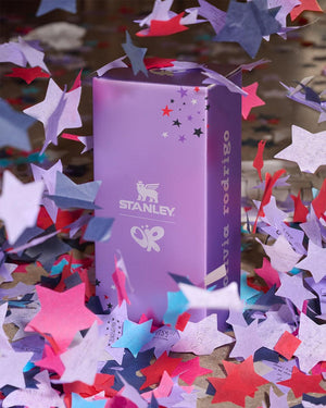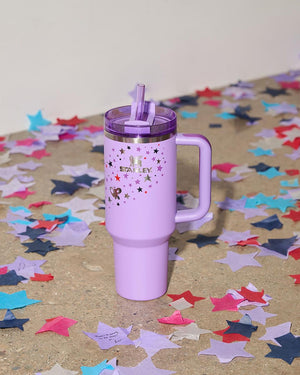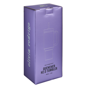 As the OLIVIA RODRIGO collab unfolds, purple makes a rare transit. orbiting through the quencher h2.0 flowstate™ tumbler, a clear SOUR grape lid and reusable straw debut for the first time. drenched in her favorite color, the powder coat finish acts as a canvas. studded in vampire-red and silver stars, celestial art embodies the soft-grunge essence of GUTS.